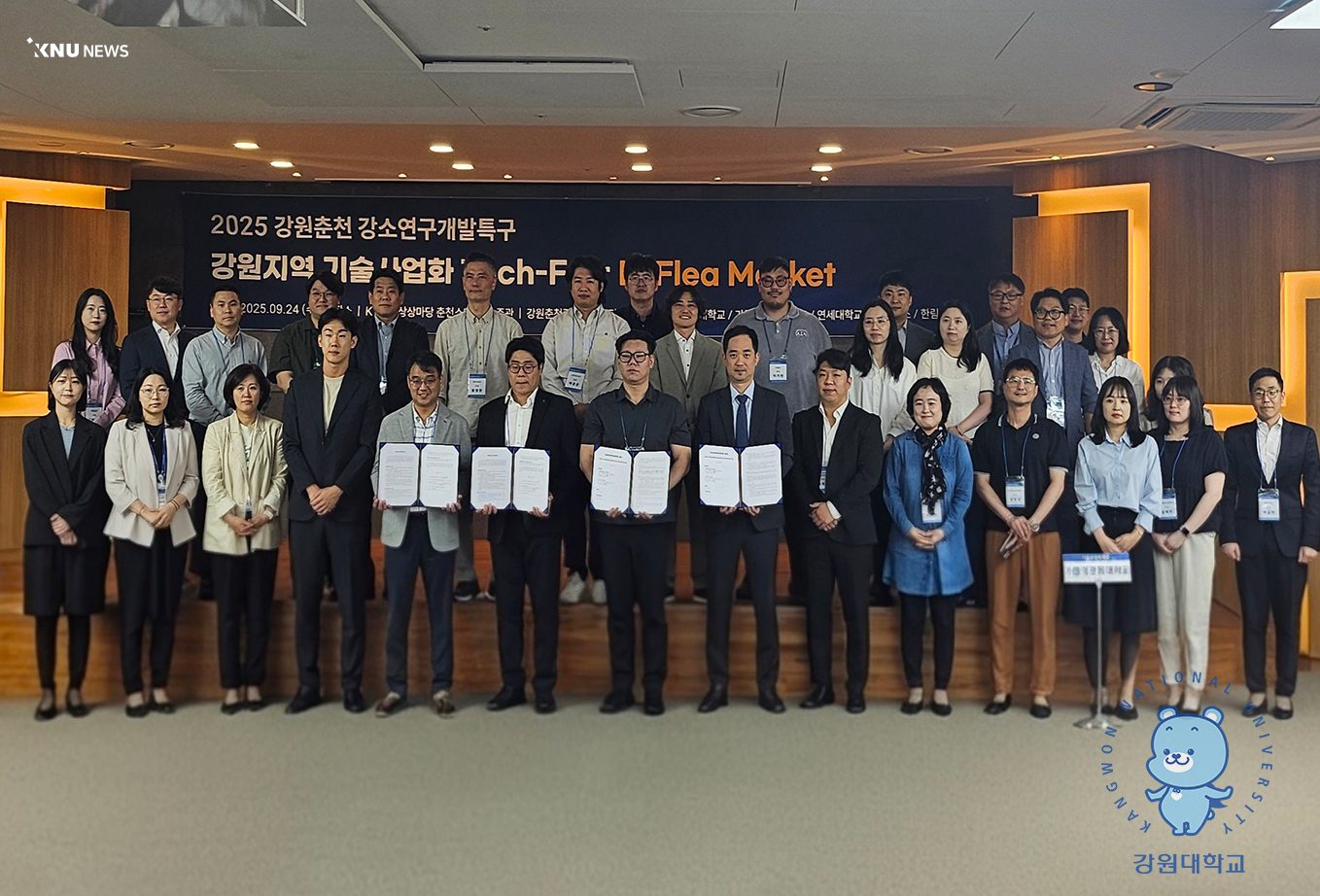 산학협력단(단장 장철성)은 ‘강원대 2025 산학협력주간’의 일환으로 9월 24일(수)부터 25일(목)까지 춘천 KT&G 상상마당에서 「강원지역 기술사업화 Tech-Fair IP Flea Market」을 개최했다.
