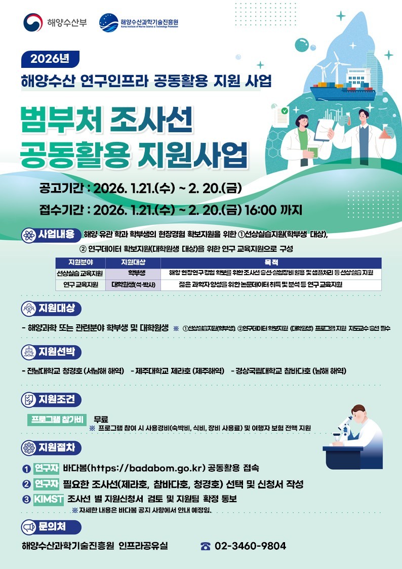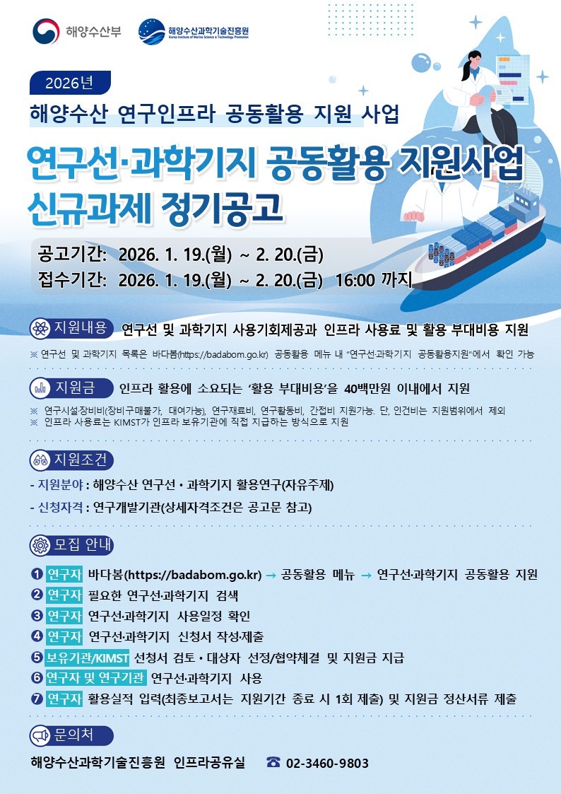 new2026년 해양수산 연구인프라 공동활용 지원사업 공모 안내