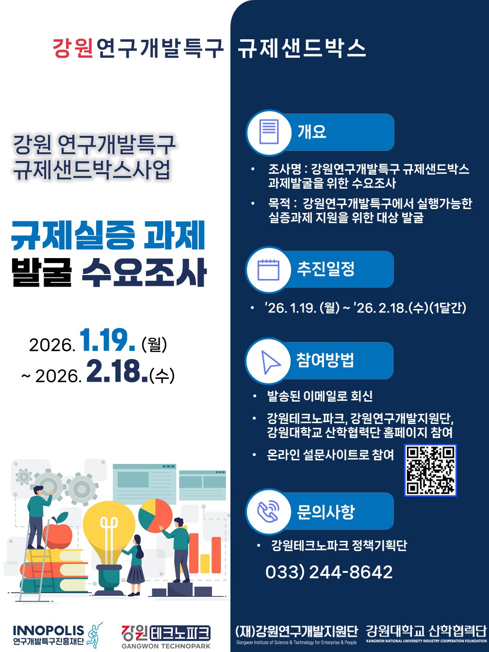 new[공고] 강원연구개발특구 규제샌드박스 과제발굴 수요조사 공고