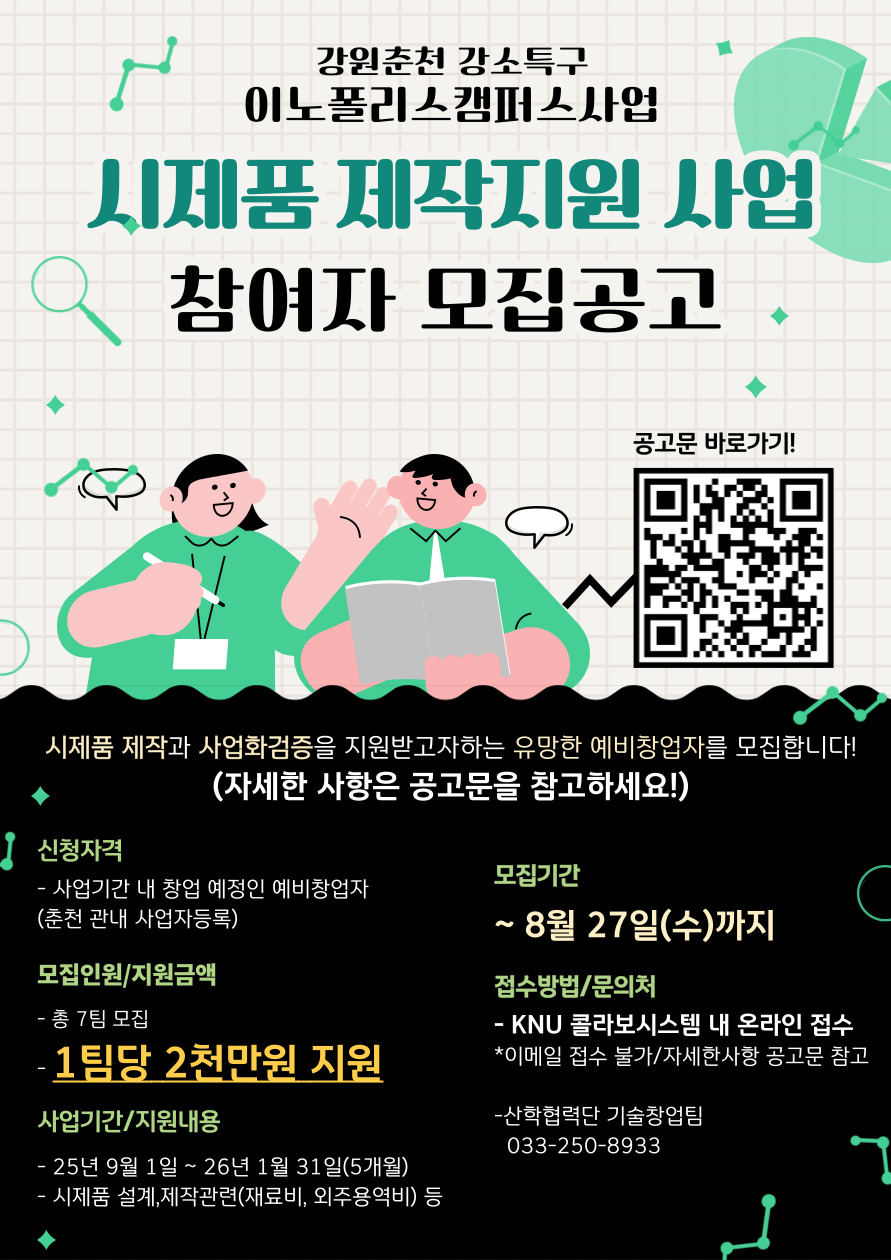 [공고]「강원춘천 강소특구 이노폴리스캠퍼스 사업」시제품 제작 지원사업